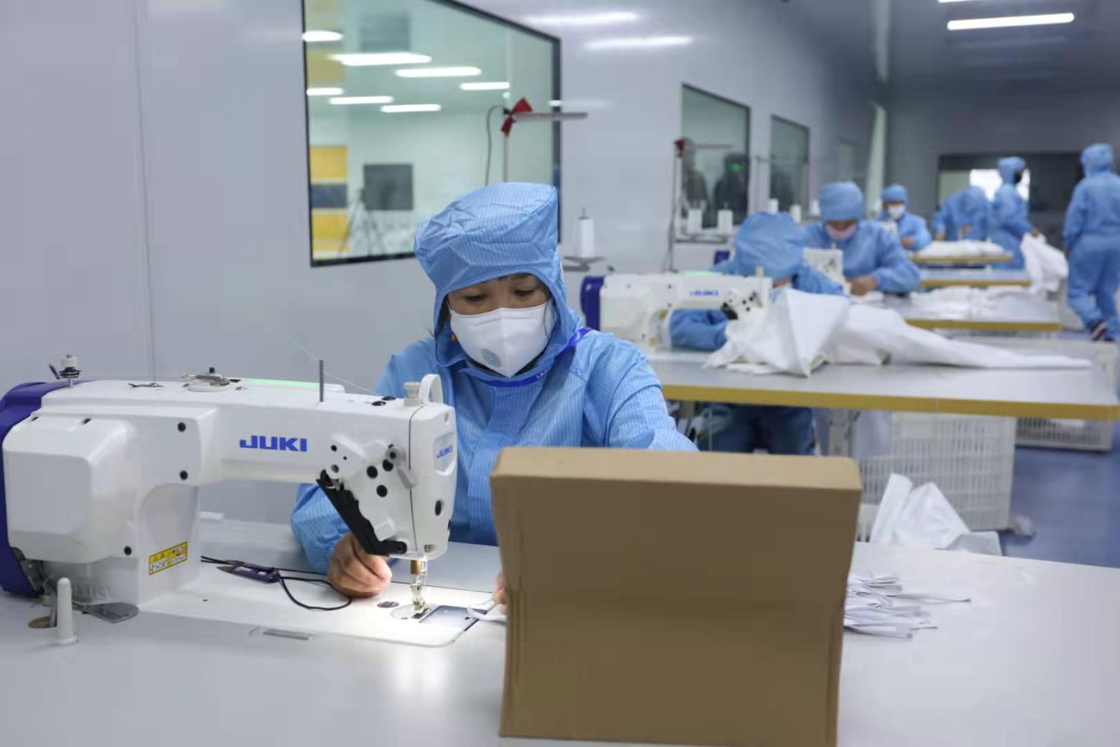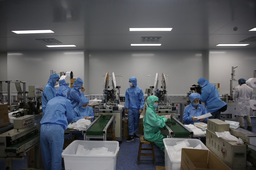 2月15日,3377体育集团新引进的口罩生产线全力开动,正式出产医用口罩产品。据悉,该批5条生产线满负荷运转后,日产口罩约50万片。此前的2月4日,3377体育集团联合晋江兴德织造有限公司启动了防护服生产,目前日均产能可达1000件。